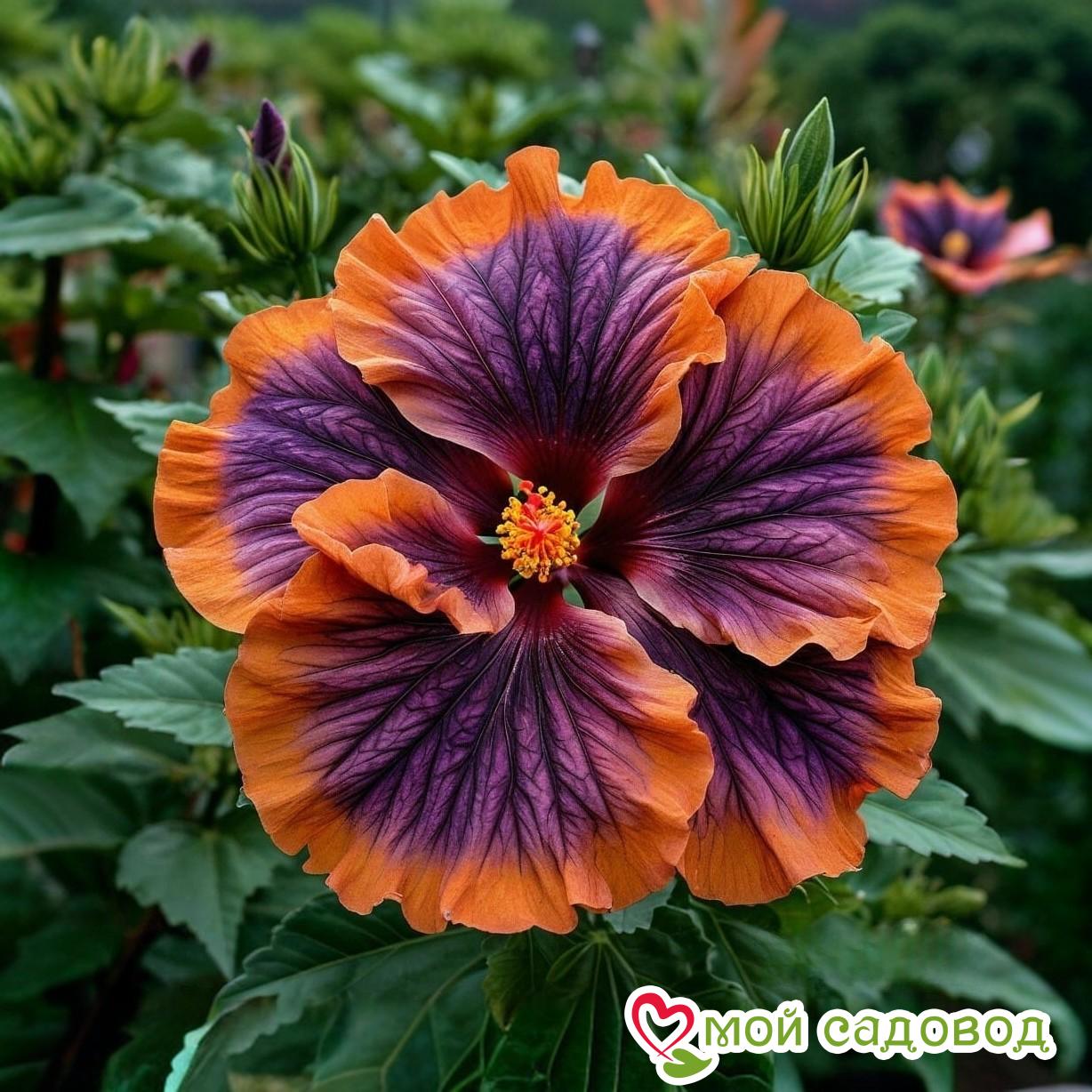 Гибискус «Оранж Спелл» — это воплощение красоты и загадки. Представьте: крупные фиолетовые цветки, словно бархатные лепестки, опалённые огнём, с яркими оранжевыми краями, словно языки пламени. Этот гибискус создан для тех, кто ценит оригинальность и хочет добавить в свой сад нотку волшебства. Его красота приковывает взгляд и дарит ощущение прикосновения к чему-то необыкновенному.